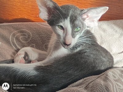 Mirabelle unsere kleine cream-spotted Orientalin und Lux der einzige Kater im Wurf (OKH blau-weiss),